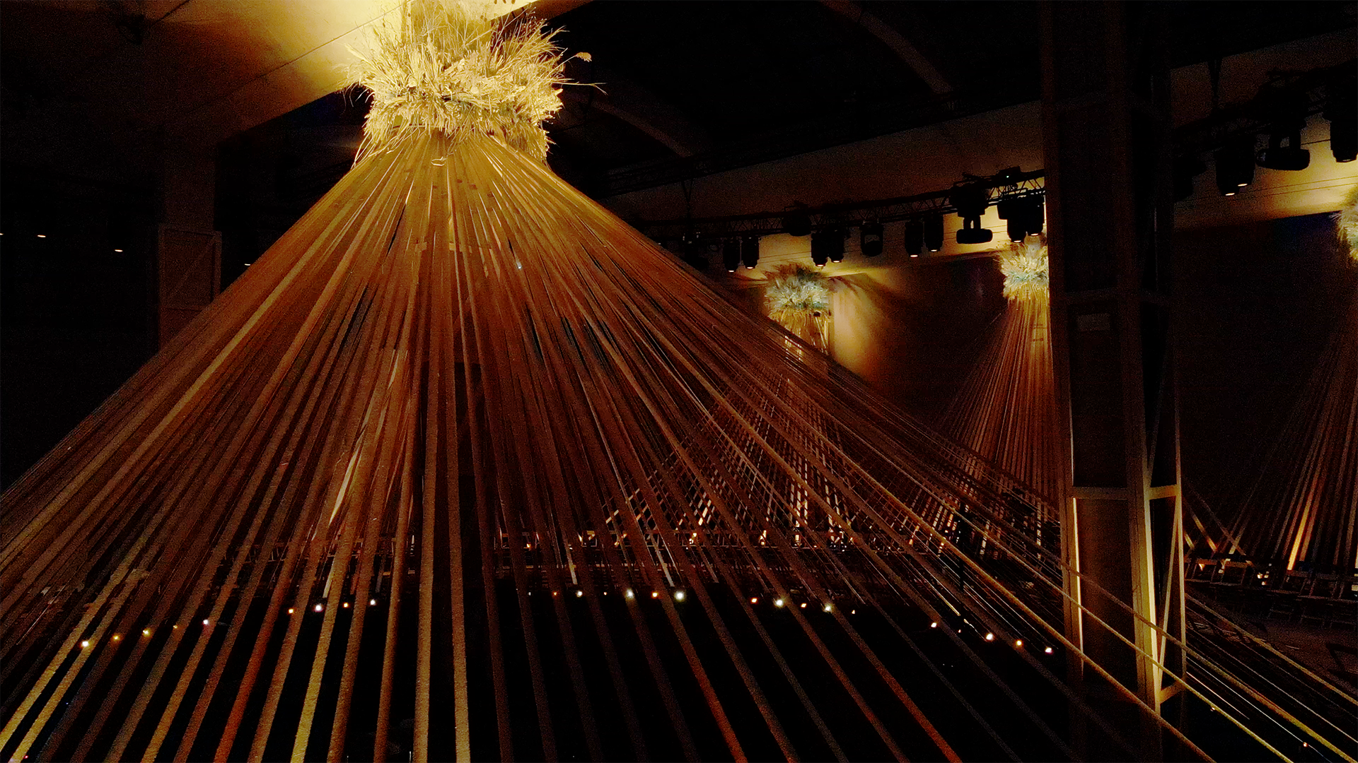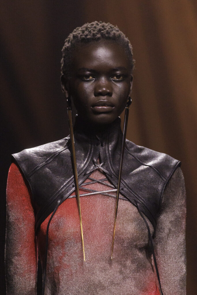It stood at the center of the space like a modern harvest symbol, wrapped in natural textures and folklore. Around it, the collection’s themes of ritual, instinct, and rebirth came to life. A. G. Cook’s soundtrack moved from quiet acoustic notes to a deep, pulsing rhythm, echoing the shift from restraint to release. The house also partnered with ACT1.5 to lower the show’s environmental impact through renewable energy, electric transport, and low-impact materials.