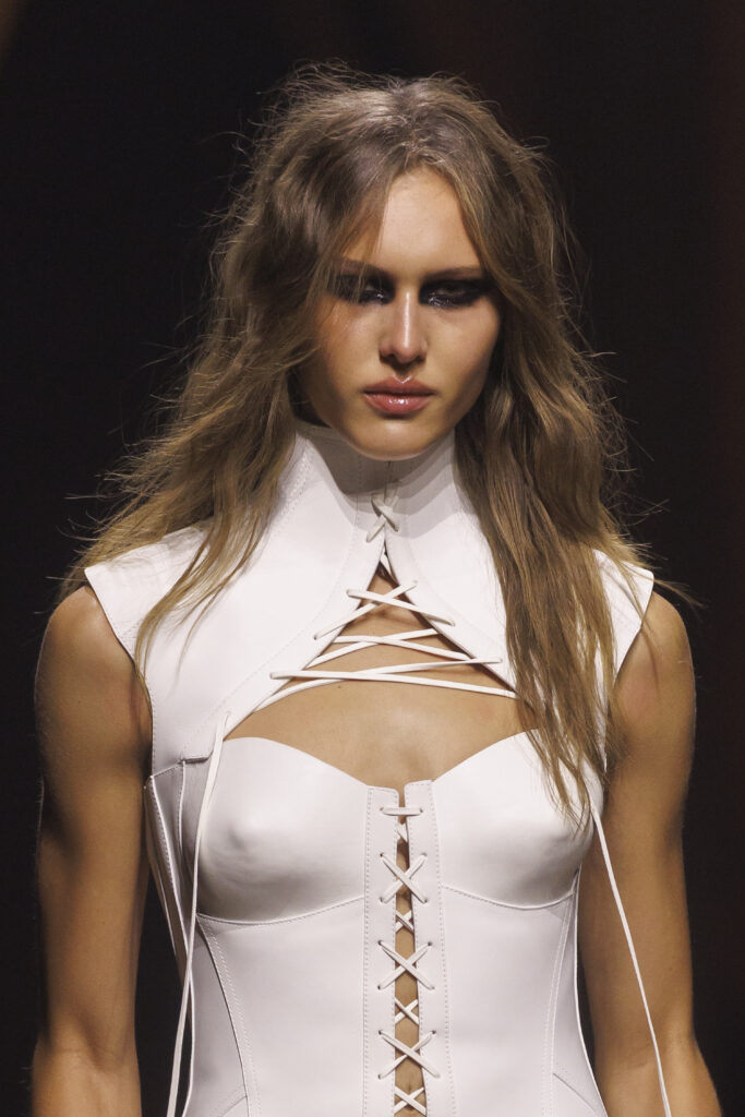 There was a time when Alexander McQueen’s world revealed what fashion usually hid. Skin became statement, with exposed hips, low cuts, and silhouettes that turned vulnerability into strength. The shows moved through shadow, with models in dark, hollow makeup and eyes that looked both haunted and defiant. Beauty felt uneasy, sharpened by tension, and the body was always the starting point.