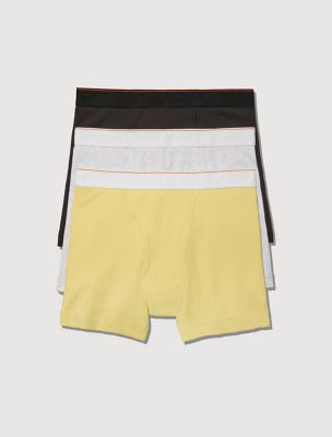 Heron Preston for Calvin Klein is the embodiment of luxury streetwear, high quality and excellent fashion. Classic CK boxer briefs with a cotton stretch blend come in shades of butter yellow, gray and charcoal with orange tipping, perfect for any occasion.
