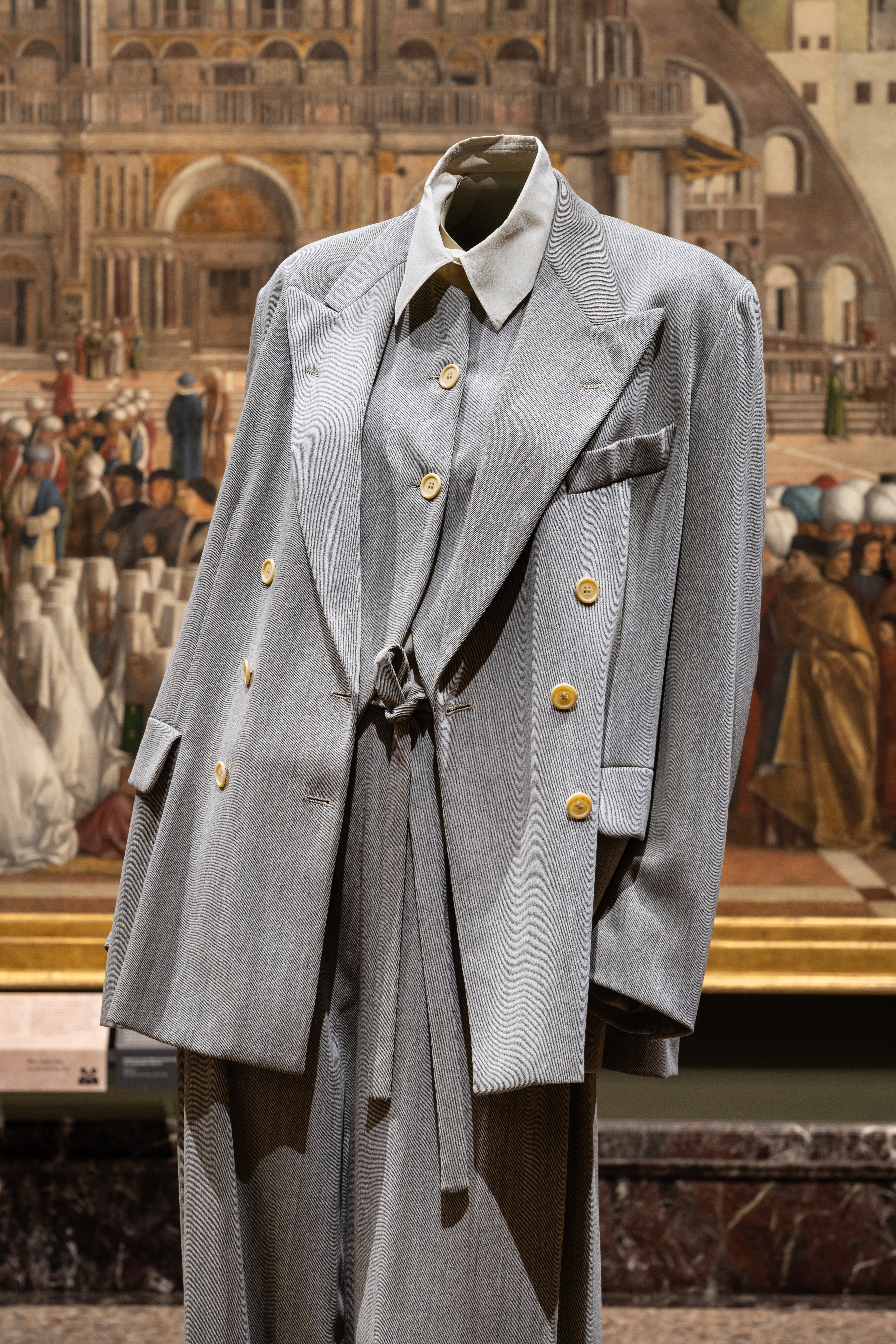 The garments appear in conversation with the gallery’s permanent collection. Exceptional tailoring and precise detailing unify the pieces on display. The exhibition also serves an educational purpose, capturing a shifting aesthetic and cultural landscape in a body of work spanning 50 years long. The selections were pulled from ARMANI/Archivio, a dynamic archive built to preserve the legacy of the brand. Giorgio Armani’s personal connection to Brera underscores the collaboration.