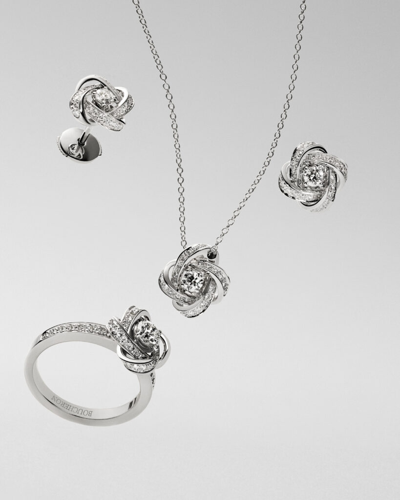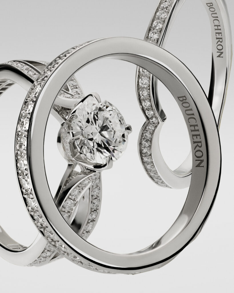 Boucheron is embracing the season of love with the presentation of several new pieces amid with the launch of the brand’s campaign, “Getting Closer.” Mirroring the pillars that build a strong relationship, the collection is grounded in transparency and trust. Each round-cut center diamond can be traced back to origin, a milestone for the Maison.