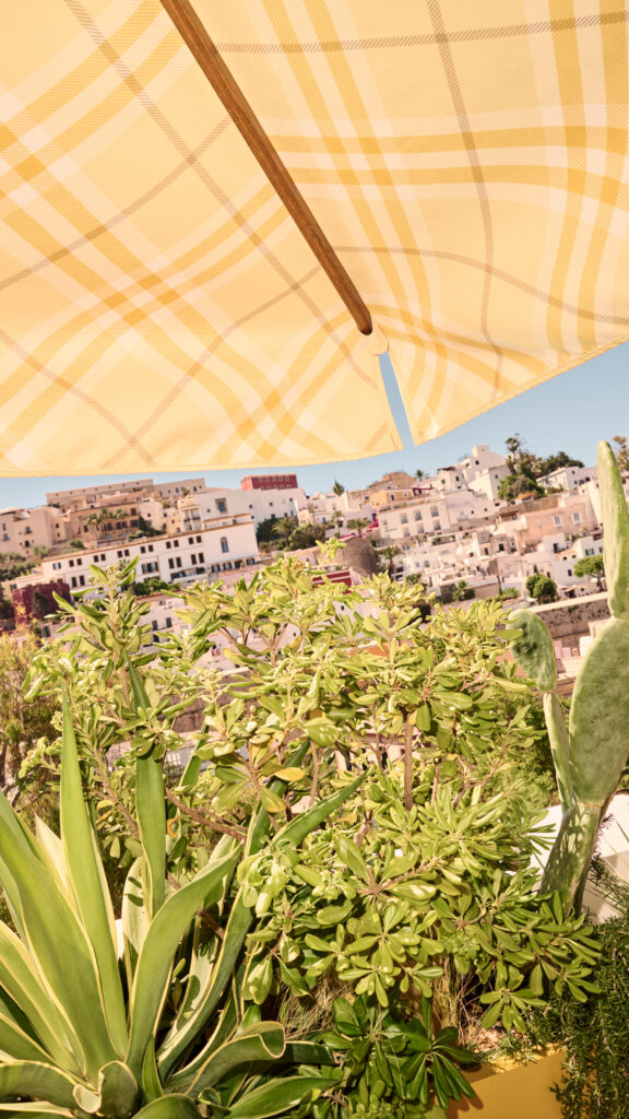 At the heart of the collaboration is a bespoke Burberry Check, a playful marriage of the brand’s heritage pattern and The Standard’s vibrant yellow. This exclusive motif decorates every corner of UP, from parasols and loungers to branded seating, and even adorns Check Mate, a Burberry-branded boat sailing the sparkling Ibiza coast.