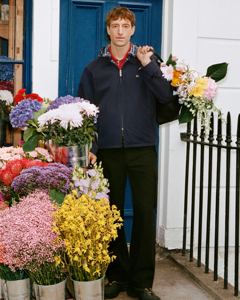 The collection evokes a sense of soft romance, blooming alongside hints of flora and fauna. Set in a London florist, the visuals follow the couple as they stroll through the city, sit on a bench, and share a bouquet—springtime details revealed through historic townhouse and gentle pops of color.
