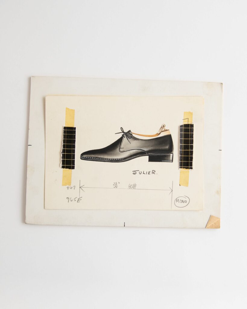 The campaign is a photographic project that serves as a virtual archive tracing the history of the English shoemaker to its roots. Various men’s and women’s designs reflect shifting tastes and reveal the classic prototypes that would define particular decades. Some of the originals lifted from the brand’s archives include a hand-embroidered women’s shoe dating to 1900, a men’s perforated derby from the 1920s and a suede and silk-lined women’s court shoe from the 1950s, among others. Images of preserved sketches accompany some of the prototypes.