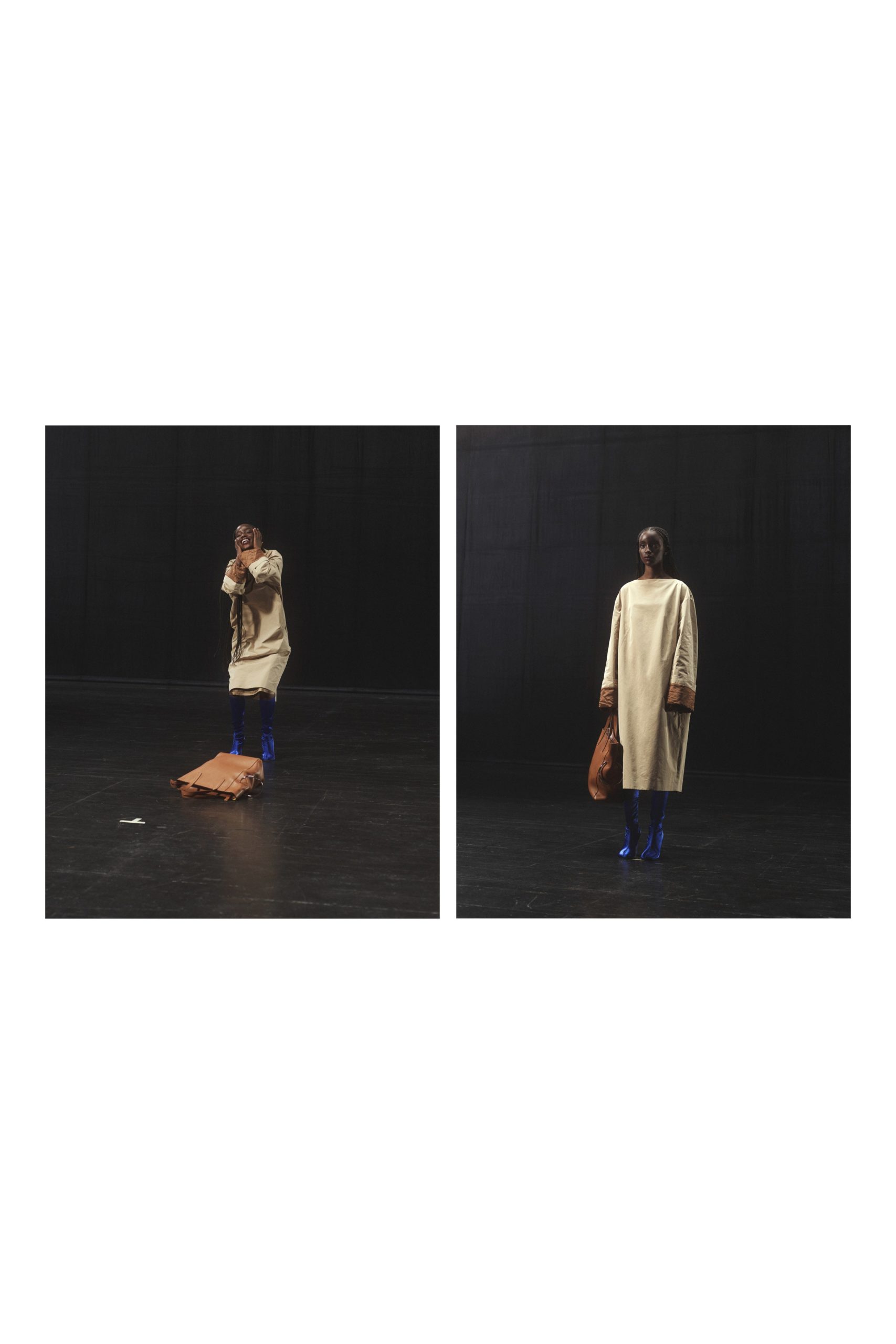 Twisting, stretching, falling, reaching—models transform into interpretive dancers in a masterclass of exaggerated pose. The body is just as much a part of the presentation as the clothes themselves. On the stage of the deSingel theater in Van Noten’s native city, Antwerp, the simplistic set design allows these larger than life pieces to markedly stand out.