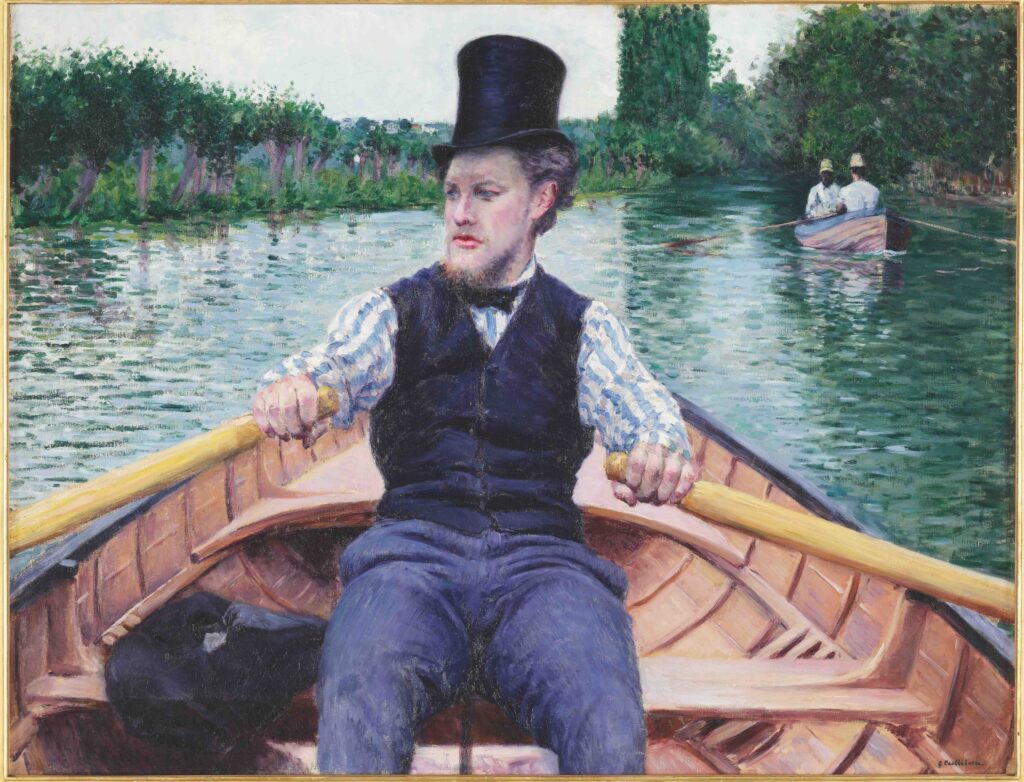 Caillebotte was a Parisian Impressionist painter, who joined alongside Claude Monet, Edgar Degas and Auguste Renoir following their famed Salon of 1875 exhibit. Like his counterparts, Caillebotte became known for capturing modern life and bourgeoisie leisure. Specifically, his works capture the growth of Paris, late-nineteenth century menswear and the rise of physical activities, like rowing.