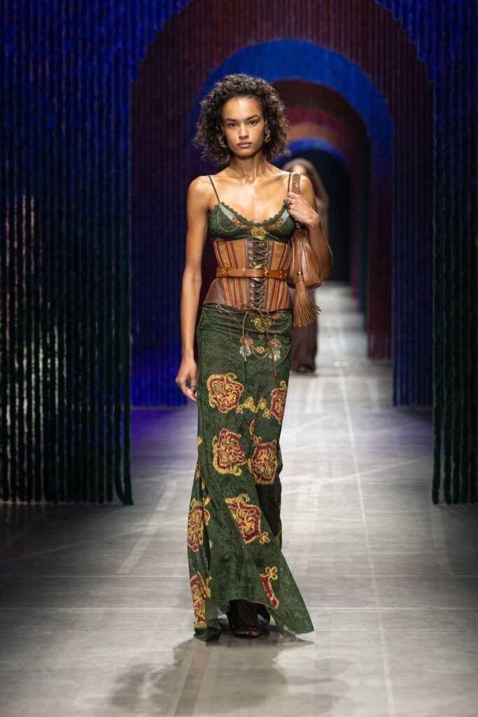 Under the direction of Marco De Vincenzo, ETRO SS26 evolves its recognizable paisley codes into a full-blown maximalist party. The Italian house presented its latest collection at Milan Fashion Week, featuring British-inflected tailoring, and a wandering, romantic spirit through pleated skirts, heraldic cords on knits, and devoré jacquards.