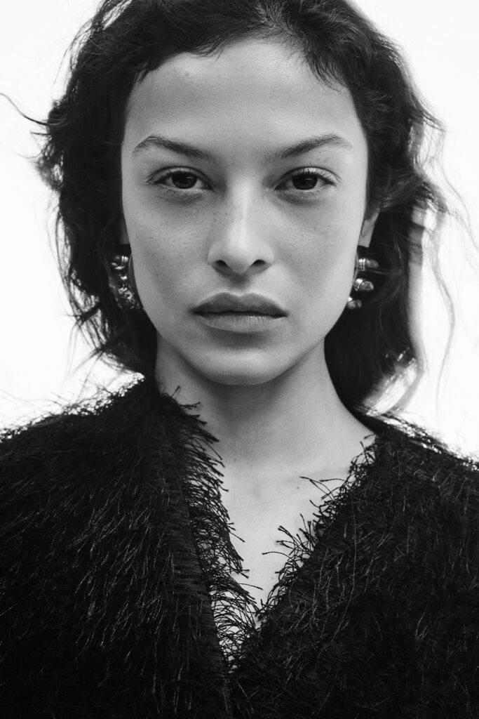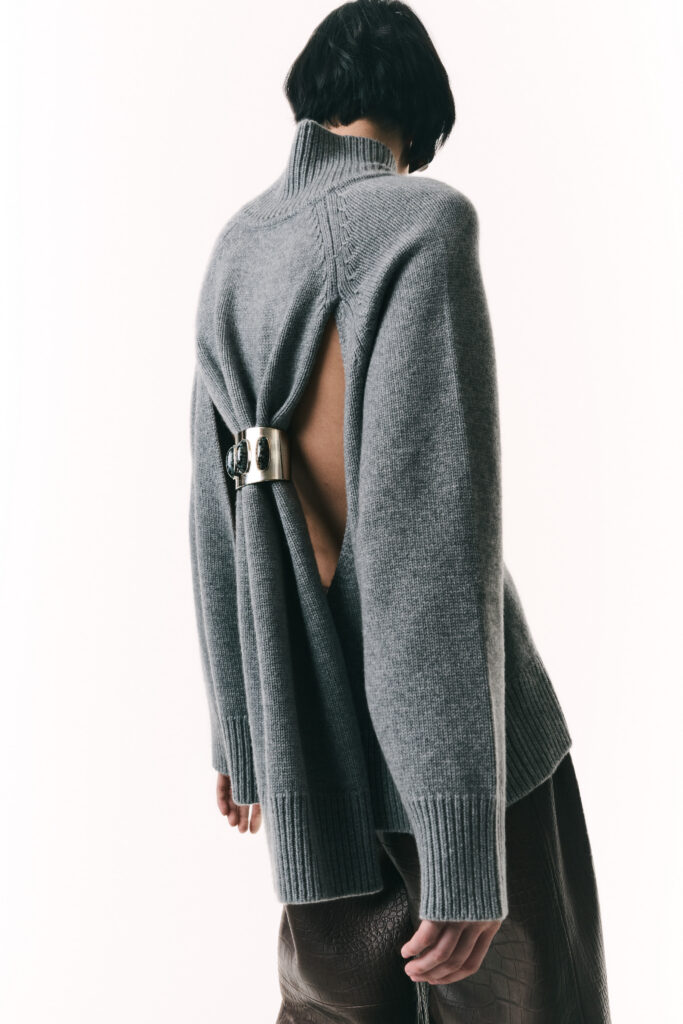Menswear appears throughout the collection, too: tuxedo shirts, cottons, jackets. What would traditionally be sharp, strictly tailored, appears softened. The tailoring is given space to breathe, relaxing and allowing the fabric to move freely. Throughout the collection, fabrics tell a story, with beading on knits, sequins, hand-fraying, and sliced leather. The incredible range is on full display, Maxwell presenting a capability of both sharpness and abstraction.