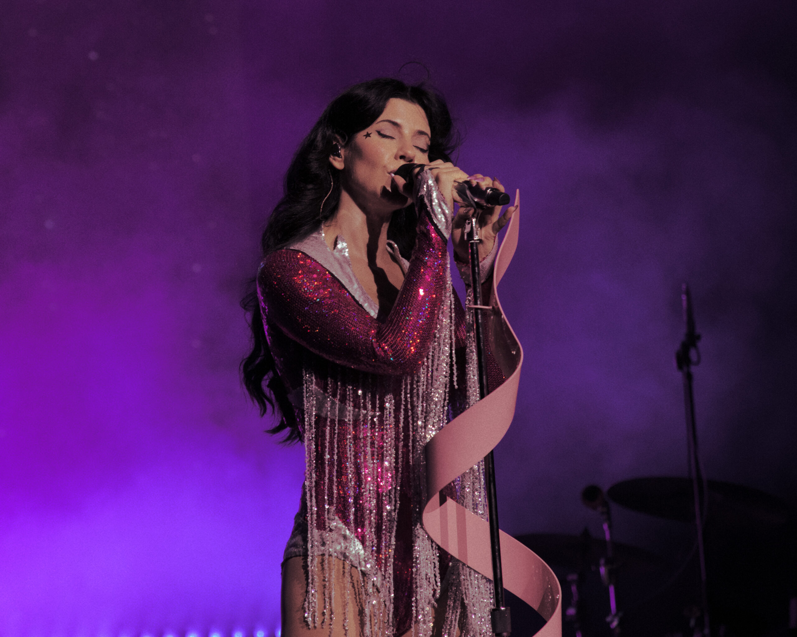 Marina’s newest era is all about unapologetic self-love. Released earlier this year, her highly anticipated sixth studio album illustrates an inward reflection, embracing vulnerability and, in turn, reclaiming her own power and sensuality. Celebrating the release, the singer began her North American “PRINCESS OF POWER” tour in September with her final bow scheduled in Mexico City this November. Rather than a concert, the tour itself unfolds more like an ascension, a pageant of power.