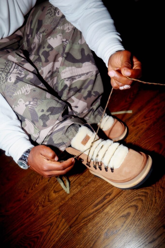 Ferg, the curator of this year’s UGG Feel House, led the evening wearing the UGG Adirondack Boot XXV in Chestnut. The artist shaped the space as a reflection of the Feel House’s mission: a place where creativity, culture, and self-expression converge, redefining what comfort and style look like across music, fashion, and design. Inside, guests including Sarah Jessica Parker, Lil Yachty, Elsa Hosk, Stefon Diggs, Aweng Chuol, and EJAE experienced the UGG x sacai collaboration firsthand.