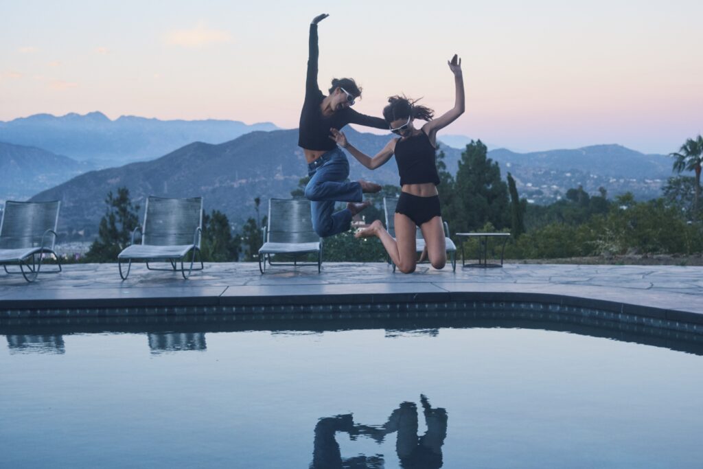 The campaign captures the final freeing moments of young summers—endless lounging on the floor, the final jump into the pool, listening to vintage records. Against the backdrop of the sunsetting LA landscape, we get a peek into a day in the life of Burns and Walker, singing, dancing, and swimming, a reflection of their genuine connection.