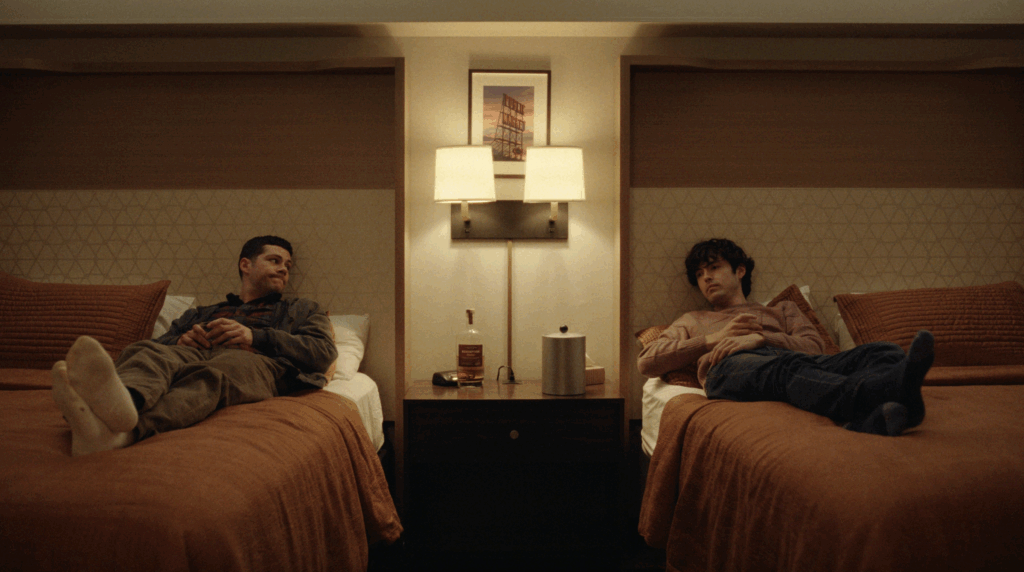 JS: We had a lot of conversations about what it means to be a gay man in contemporary America, and what dating is like, and the spectrum of performative masculinity versus femininity, and how that can also shift in certain environmental contexts and maybe present differently when you’re getting into a taxi versus when you’re fucking somebody. I just wanted to make sure it felt authentic.