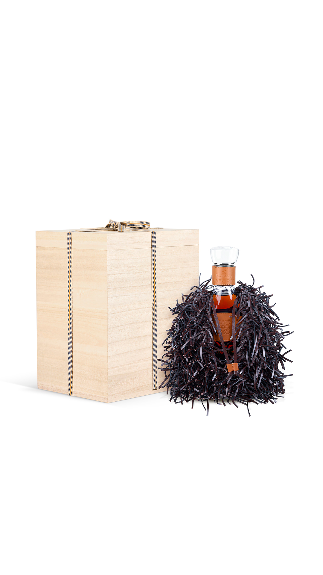 LOEWE has been perfecting leather work since 1846, but this collaboration takes their craftsmanship in a fresh direction. In their Spanish workshops, artisans spend over ten hours crafting each chestnut burr “nest,” inspired by the wooden rings used to protect Hennessy’s most prized barrels.