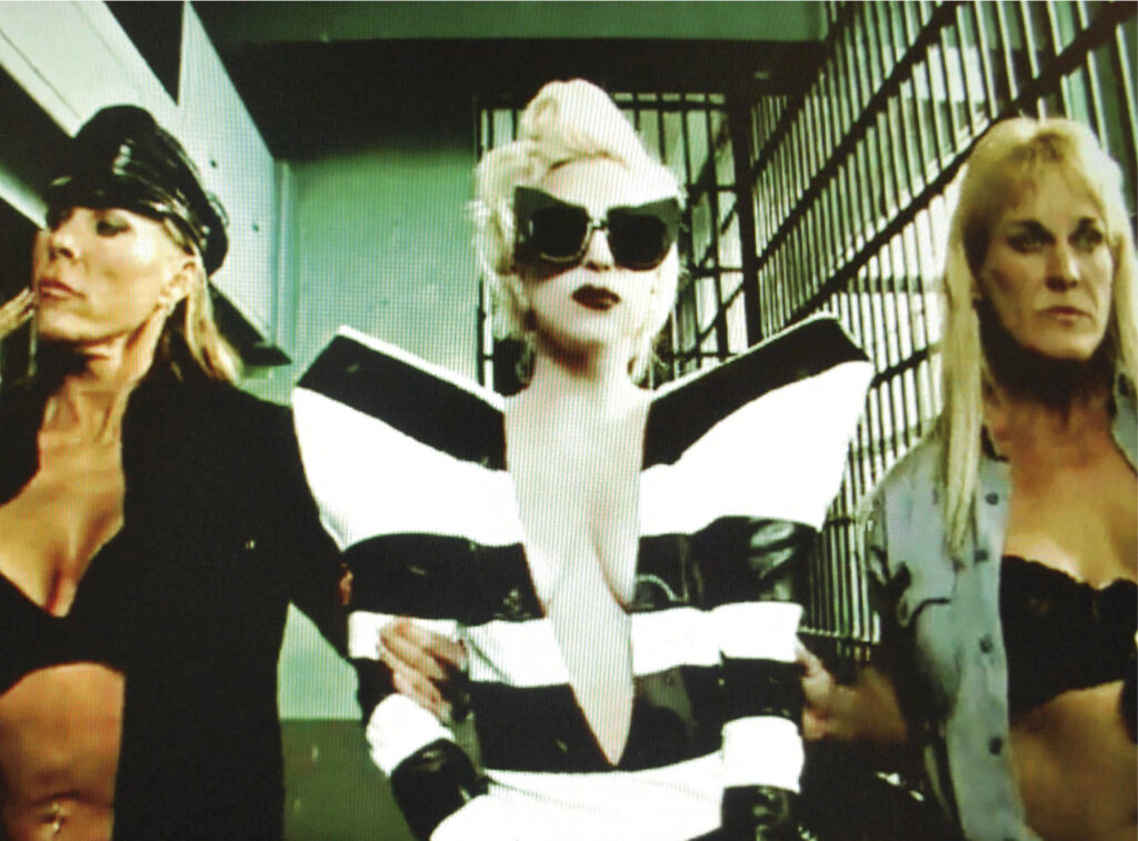 In addition to repurposing, De Castelbajac was also a pioneer in thoughtful collaborations, drawing other avant-garde artists into his orbit like Robert Mapplethorpe, Malcolm McLaren, Cindy Sherman, and Keith Haring. Tapping into the bubble of pop culture, the designer’s work has drawn in newer generations since dressing Lady Gaga and Vanessa Paradis, and even designing Farrah Fawcett’s looks in the original Charlie’s Angels series. Visitors will also be able to see photographs of artist Andy Warhol and designer Vivienne Westwood in De Castelbajac’s signature colorblocked styles.