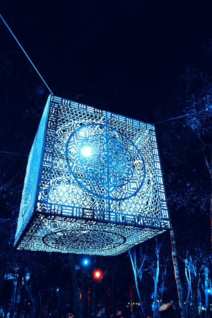On the sacred Mayan grounds, V witnessed the magic that takes hold in the mythic hours from sunset to sunrise. Ancient creatures roam the festival grounds, while partygoers are transported into an otherworldly realm suspended between the ancient world and modern mankind. The festival’s Experience Director Eden Schroder, alongside Head of Production & Operations Carlos Lopez and the wider Day Zero team, have crafted the festival’s visual environment to echo the rapturous energy of the party—neon fog, disco lanterns strung between trees, and magical sculptures that dance with the sound.