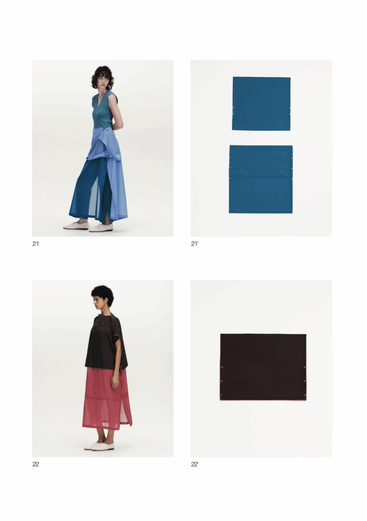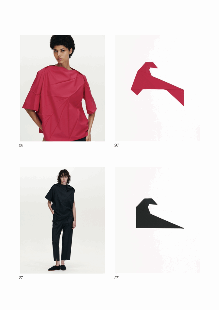 Step into the pages of Isse Miyake’s Spring 2026 Lookbook, where each page is enveloped in the visual poetry of the brand’s signature artistry. The collection harbours a sense of muted passion, expressed through unique and sculptural silhouettes that ripple around the body, evoking a sense of illusion. Despite their muted nature, the colors still leap from the pages, vibrating off a sense of playfulness intermixed with elegance.