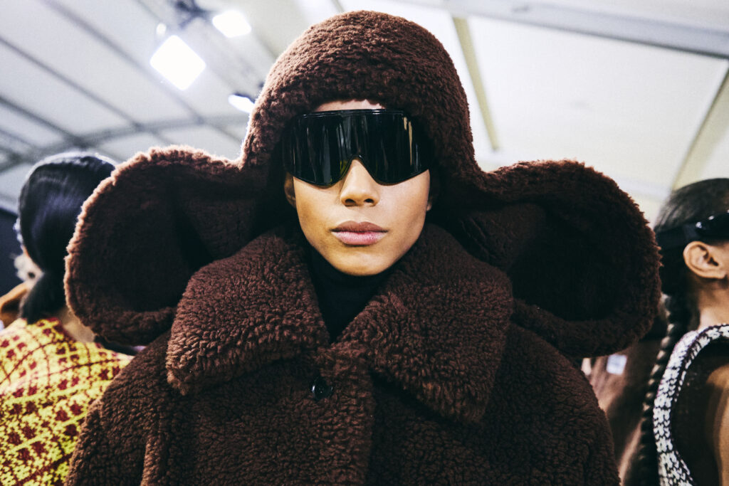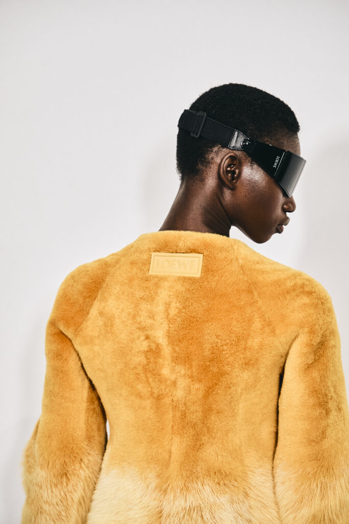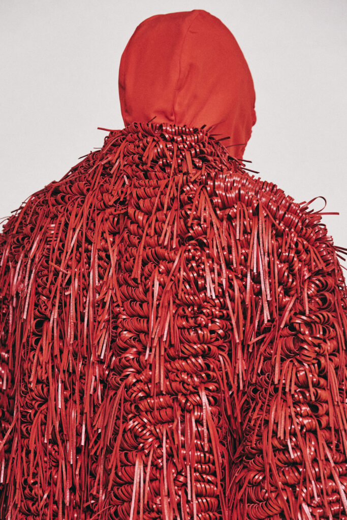 The true magic of Loewe’s new duo is in their knack for outerwear. Hairy fringe coats, inflatable raincoats, and rubber-y leather coats, shaped in Polly Pocket-esque molds. Coats with matching fur paws, coats with pompous hoods, coats with protruding, flared collars. In times like these, a whimsical coatrack with a sense of humour feels necessary.