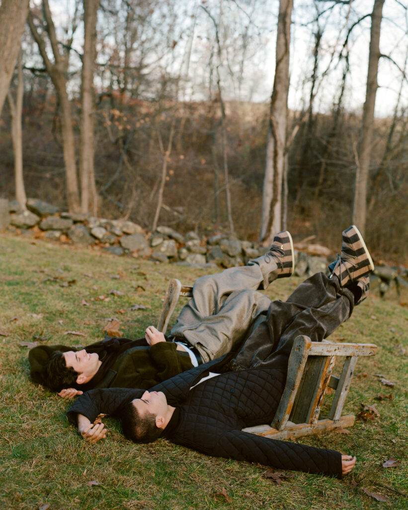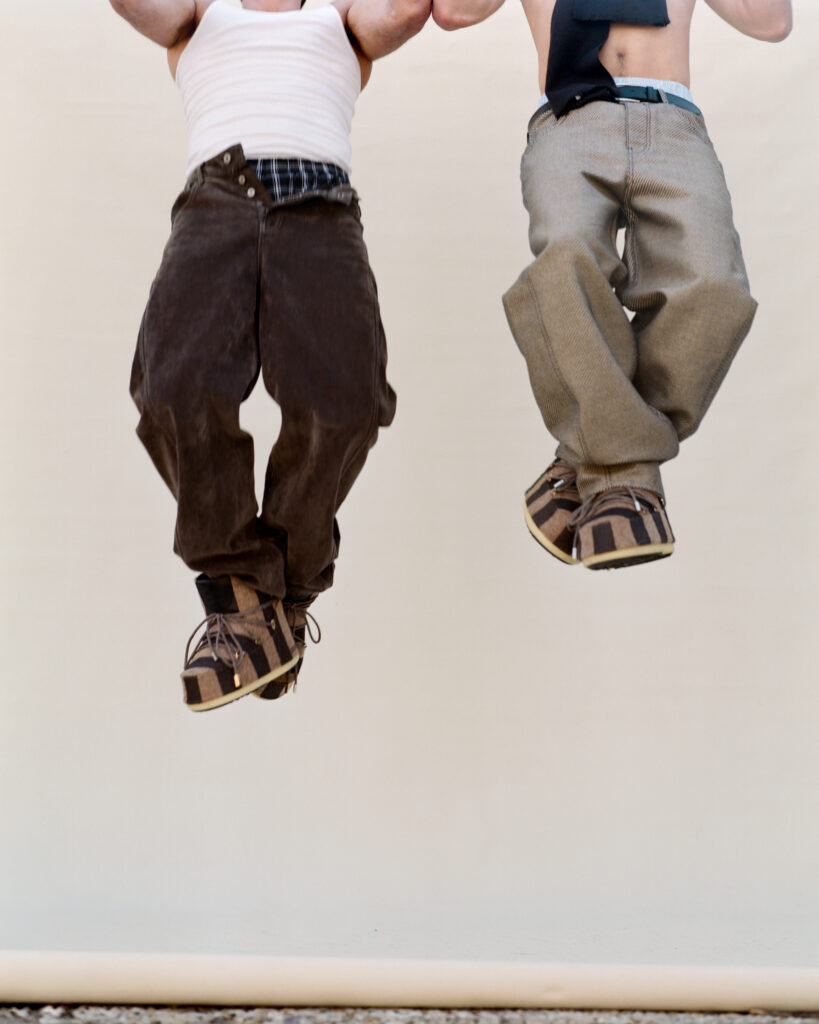 Many campaign images, lensed by photographer Tom Kneller, pair the new collaboration with other complementary Jacquemus “Winter” pieces—scarves and bomber jackets—whilst others, in true Jacquemus fashion, pair them with nothing at all.