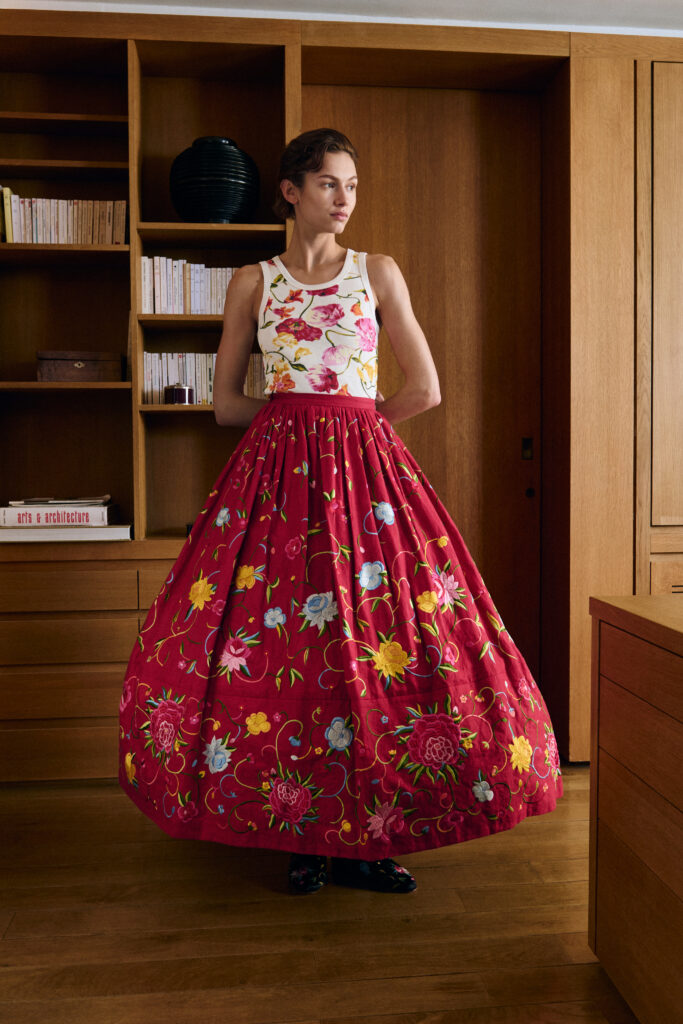 A dedicated library room within the house presents a curated selection from the Kenzo archive. Sketches, editorials, and invitations trace Takada’s creative evolution from the founding of the Maison in 1970 through the late 1990s. Key garments include a men’s quilted jacket from Fall Winter 1983 and a woman’s embroidered jacket from Fall Winter 1987. Together, they highlight aesthetic codes that remain generative today, from the interplay of geometric and figurative motifs to Americana-inflected iconography and expressive silhouettes.