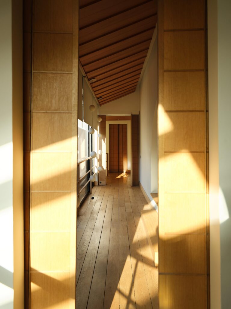 The setting itself deepens the collection’s narrative. Located in the Bastille district, the 1,600 square metre house was designed by Kenzo Takada and architect Xavier de Castella and completed in the early 1990s. Conceived as an “oasis house,” it functioned as both private sanctuary and creative hub, hosting meditation, photoshoots, showrooms, and gatherings. Drawing inspiration from Takada’s father’s teahouse in Himeji, the home integrates tatami mats, shoji doors, a tea ceremony space, and a Japanese garden with a koi pond. Takada once meditated in a specific spot facing the water, a ritual Nigo reenacted during his first visit.
