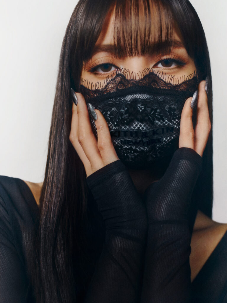 The newly released teaser features LISA posing behind a sheer black floral lace, gracing her mouth with a soft, sensual delicacy. Finished with eyelash-trimmed edges, the lace frames her face with a sense of mystery as her eyes pierce directly back at the viewer. The capsule, titled Kith Women Spring 2026: Designed by LISA, is subtly hinted at with the words “LISA” and “KITH” stamped in muted gold at the bottom of the image.