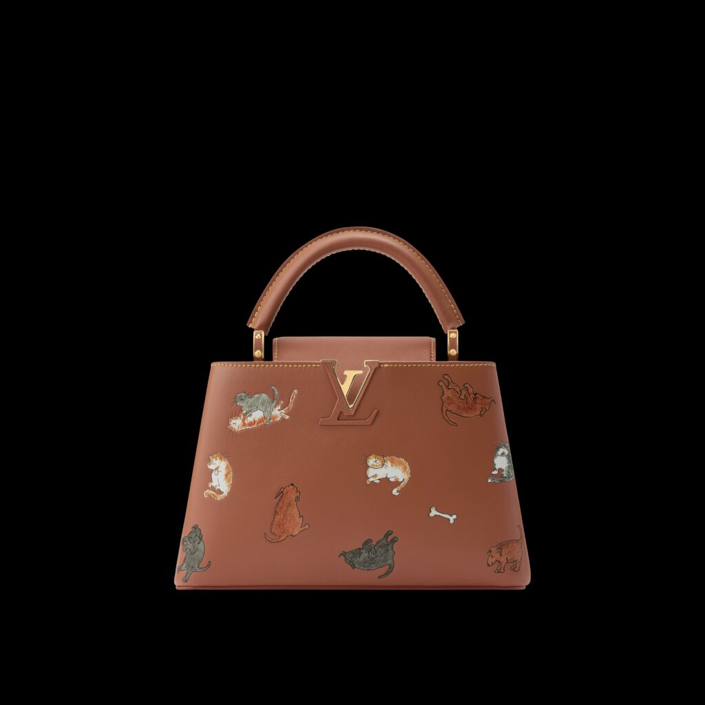For Louis Vuitton Travels With Grace Coddington, it was only fitting that designs for this collection have her personal touch. The brand’s name appears as if hand-drawn by Coddington on straps of the brand’s Speedy and Keepall Bandouliere bags. The Maison’s iconic suitcases feature a hand drawn Louis Vuitton nametag—in the style of her drawings. And of course, cats are featured throughout the new collection.