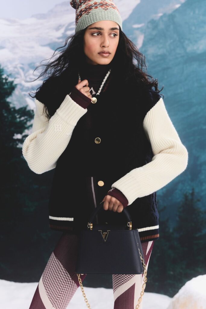 Between the hush of falling snow and the shimmer of moonlit peaks, the skiwear line finds its rhythm in racing downhill or raising a glass of glühwein by the fire. In this way, Louis Vuitton captures the season’s thrill of elegance in motion.