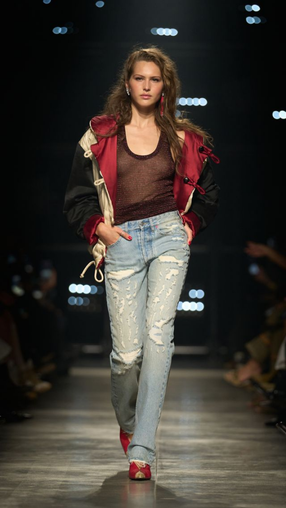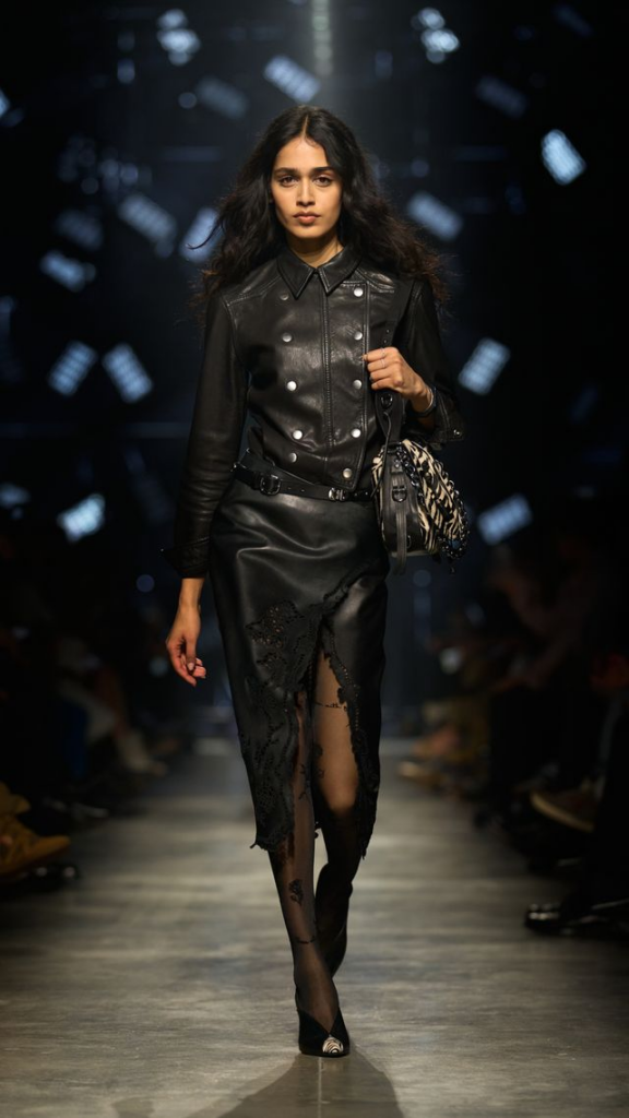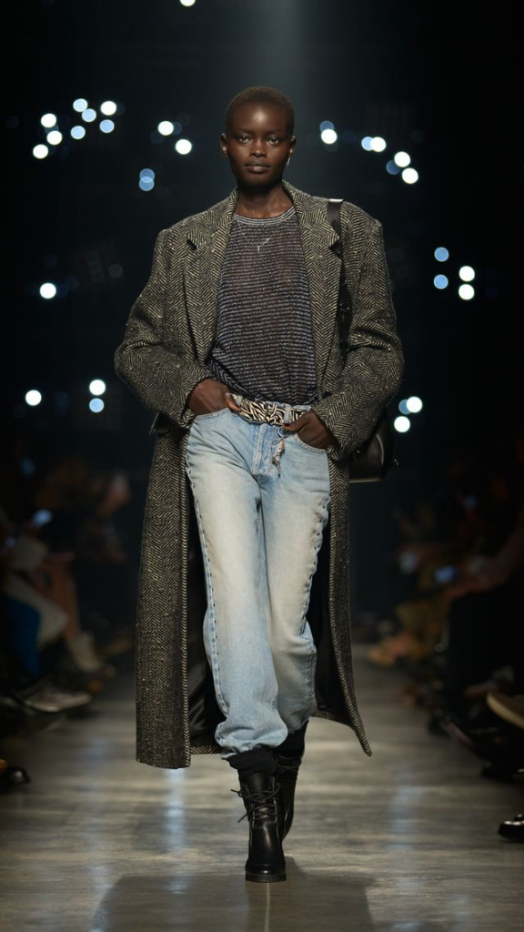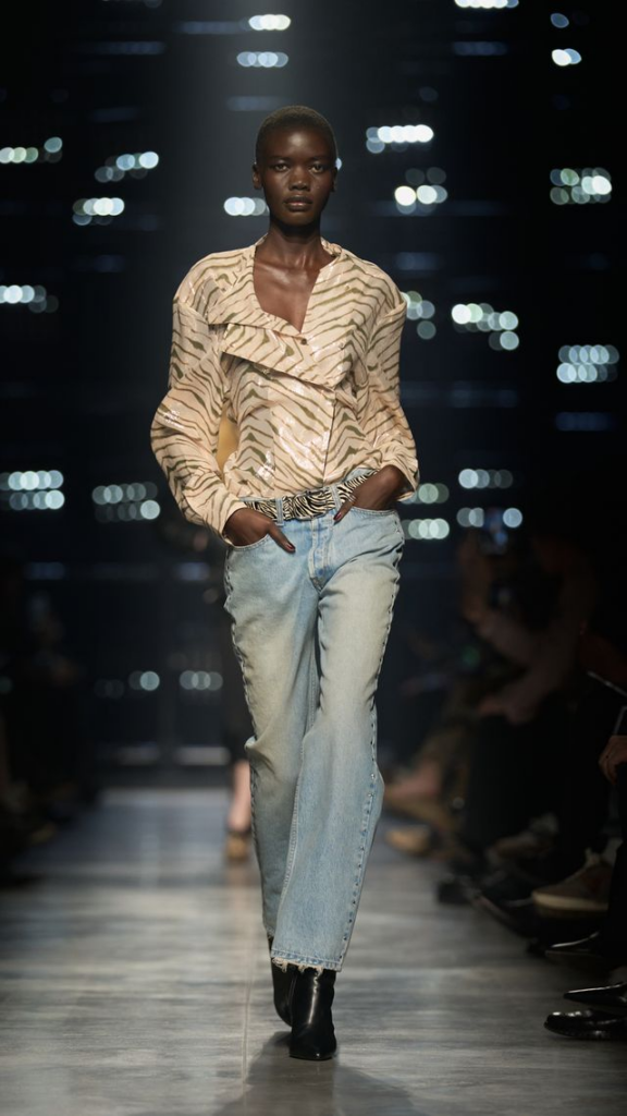 Marant’s collection is a study in contrasts, where denim meets silk, animal prints meet minimalism, and volume meets sculpted, with each piece exuding confidence and a hint of mischief.