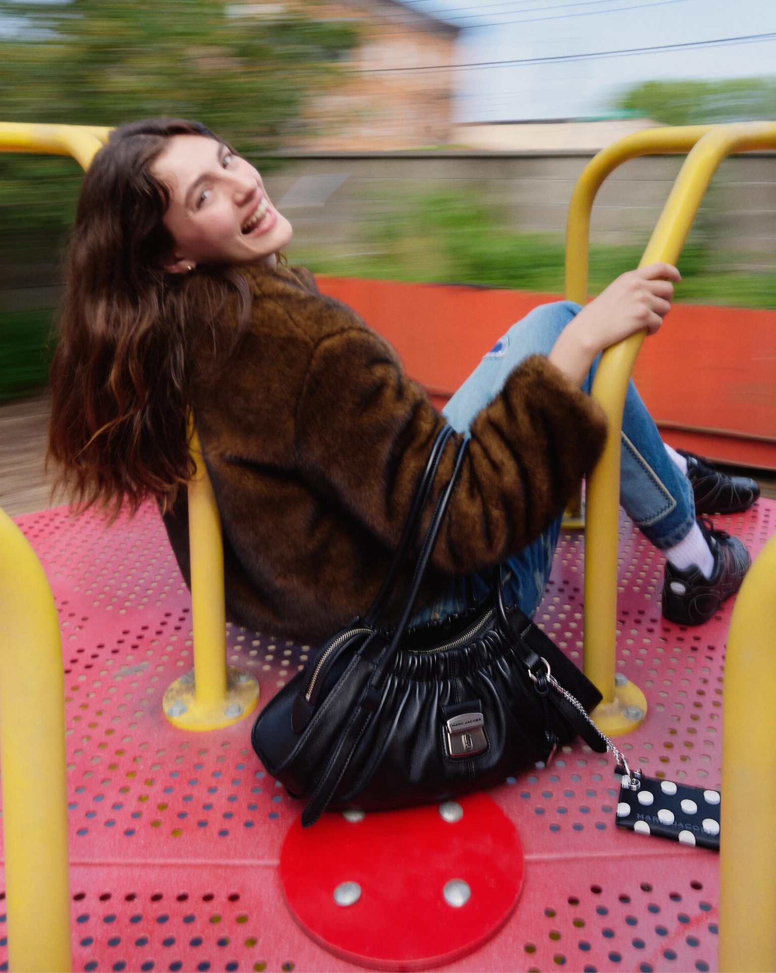The three starring muses, Mona Tougaard, Xiao Wen Ju, and Diana Silvers, skip around New York City wearing pieces of the collection, debuting the 72 Spring Sneaker, a vintage-inspired sporty trainer. The real star, however, is this season’s it-bag, Marc Jacobs’ The Cristina.