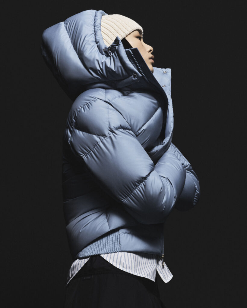 The campaign shines a light on two jackets. One is a reinvented classic, the Maya 70, which can be seen on De Niro, as well as the campaign’s models. It is one of the brand’s most iconic designs. Down-quilted, it is made from their signature longue saison recycled nylon. This jacket features a detachable hood as well as the signature logo along a sleeve pocket. A new jacket, the Bretagne, is also featured. It is a short puffer with a hood and prioritizes the desire for comfort with the need for warmth. Its silhouette offers a more cocooning look for more versatile wear.
