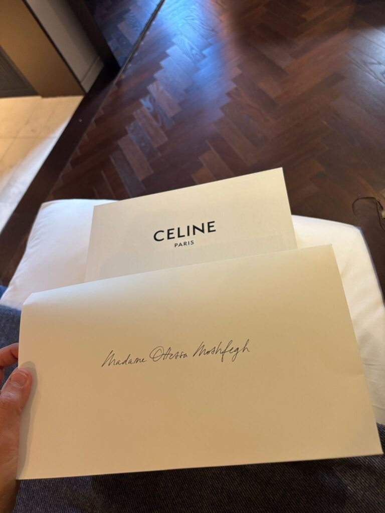 “I found my invitation waiting in my hotel room—“Madame Ottessa Moshfegh” handwritten in such graceful cursive that I half-imagined “Madame Céline” herself had signed it with an effortless flick of the wrist.”