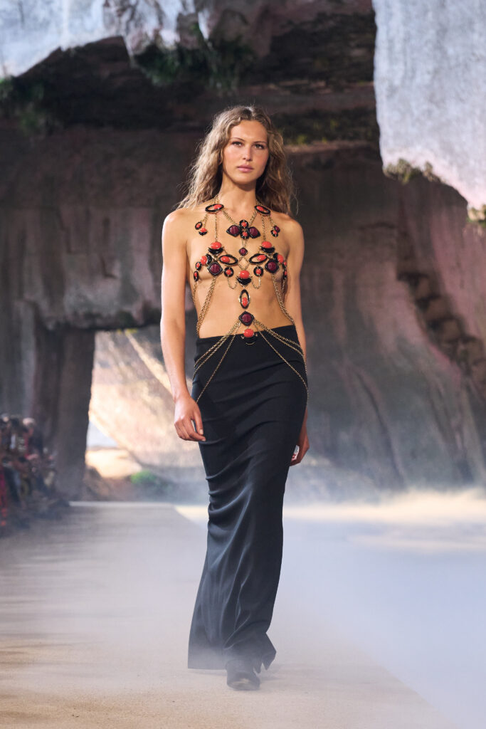 The name of Pucci’s Spring 2026 presentation, “Alba,” was apt to the time of the runway presentation. The Italian word for “dawn” was picked to reflect Miceli’s favorite time of day – whether that be for a sunrise yoga session or dancing until the sun rose in Ibiza during her youth.