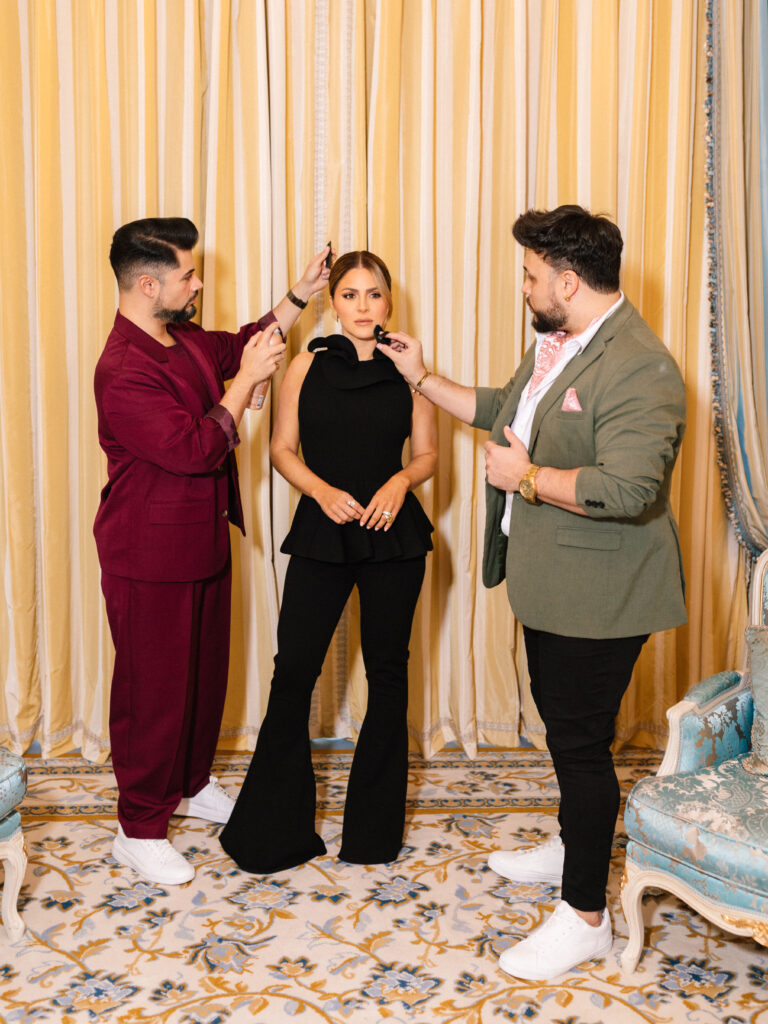 SS: I start with music, something with energy, but I can also go into Luis Miguel… I know, random! I always travel with my glam team, and depending on the time of day, I add in a mimosa. Fresh-squeezed OJ only!