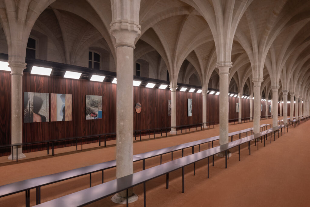 On the eve of Acne Studios’ Spring/Summer 2026 Paris fashion week runway show, the 13th-century Collège des Bernardins, once a monument to tradition, shed its veneer of historic prejudice, revealing a queer fantasy. Inside the ancient space, artist Pacifico Silano moved his artwork, based on photography and printed ephemera, across panels of dark wood, rearranging them ad nauseam until something clicked. “I’m very particular about installations,” he said. “So the night before the show, I was literally moving pieces around until midnight to find the perfect balance between rougher, more confrontational images, and the quieter, more intimate ones.”