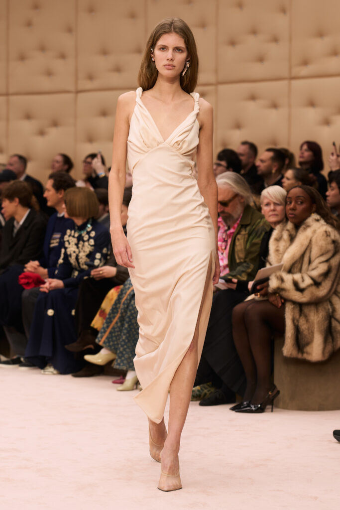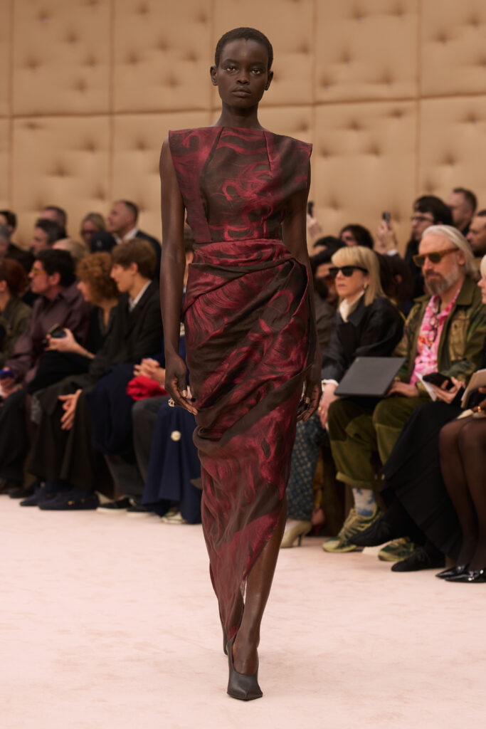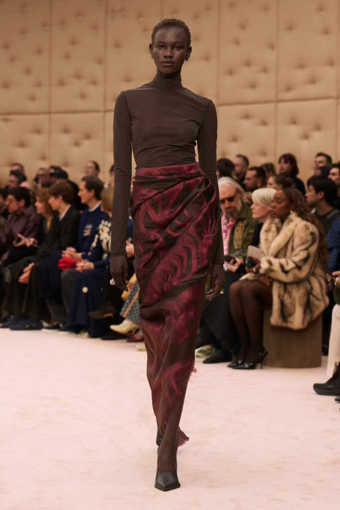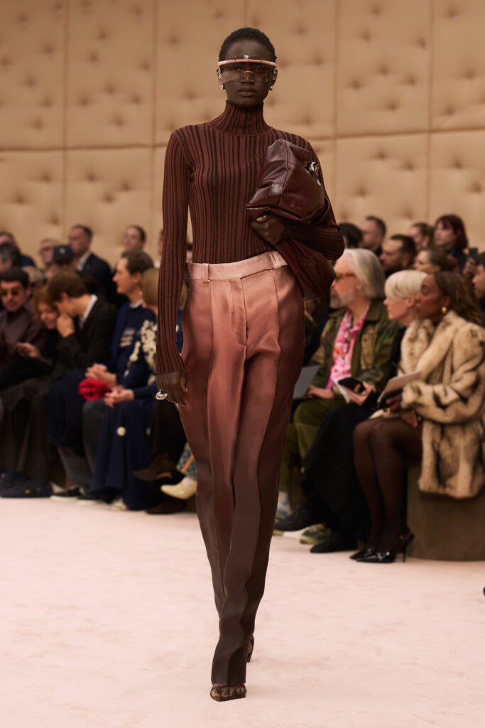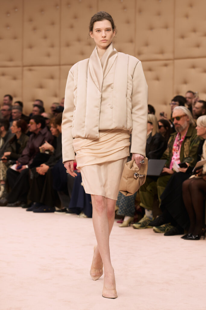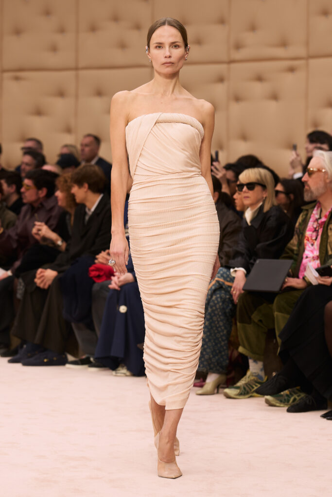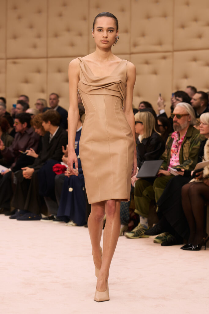 For his tenth show at Ferrari, Creative Director Rocco Iannone honed in on skin. Titled “Skins I Am In,” the collection centered on silhouettes that follow and enhance the natural lines of the body. On the Milan runway, clinging fabrics stood out against more structured outerwear. Neutral tones took precedence.