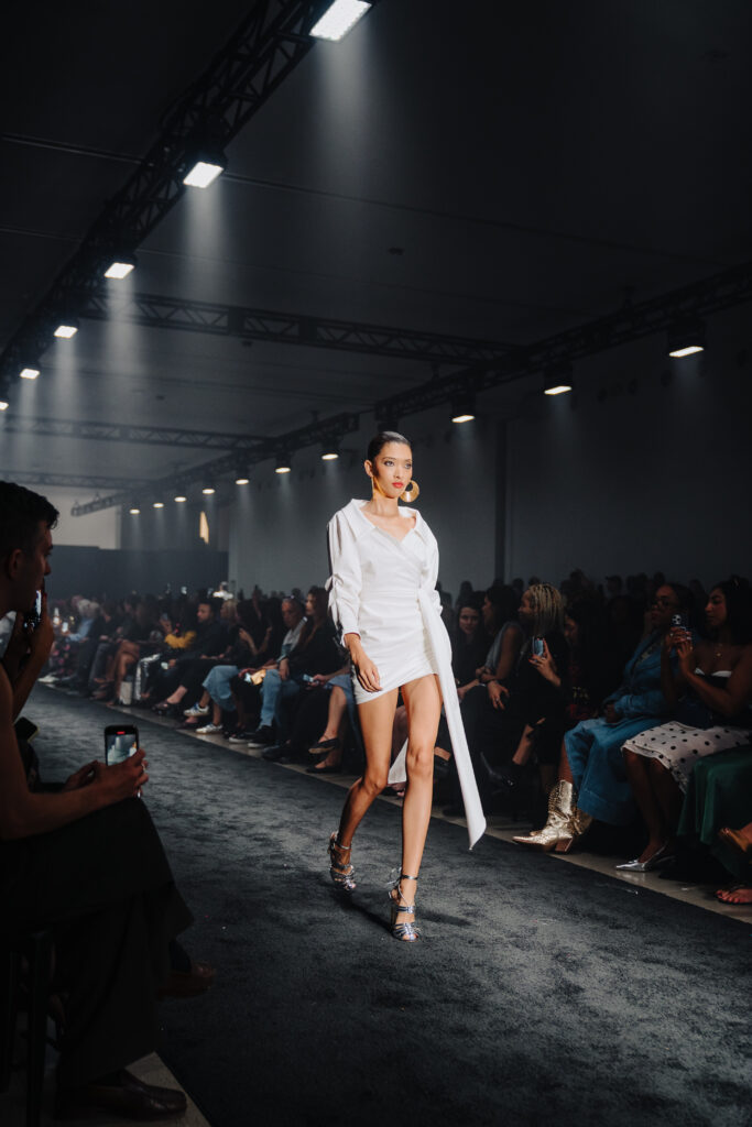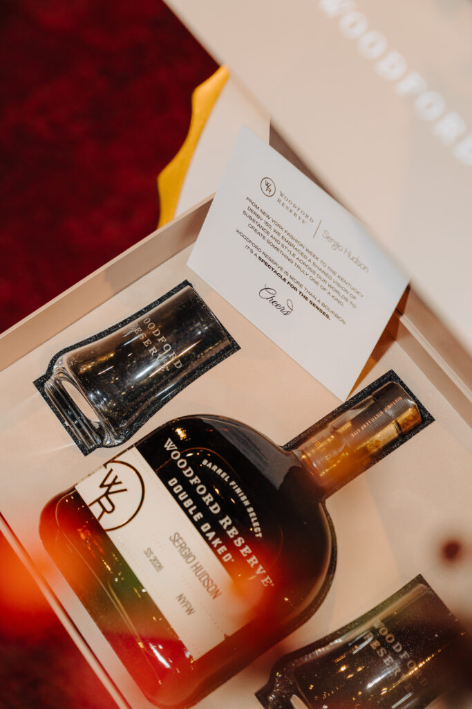 Sergio Hudson: It came about rather organically. They approached me about designing a capsule collection for the Kentucky Derby. They’re the main sponsor for the Kentucky Derby. So, that’s how we got started. And we just vibed. They started sponsoring my shows, and I like working with the same people. I don’t like just doing hire for hire. I like to build family, and that’s what I hope people feel when they come to my shows—that family atmosphere. Woodford is that kind of company, so that’s why we work together.
