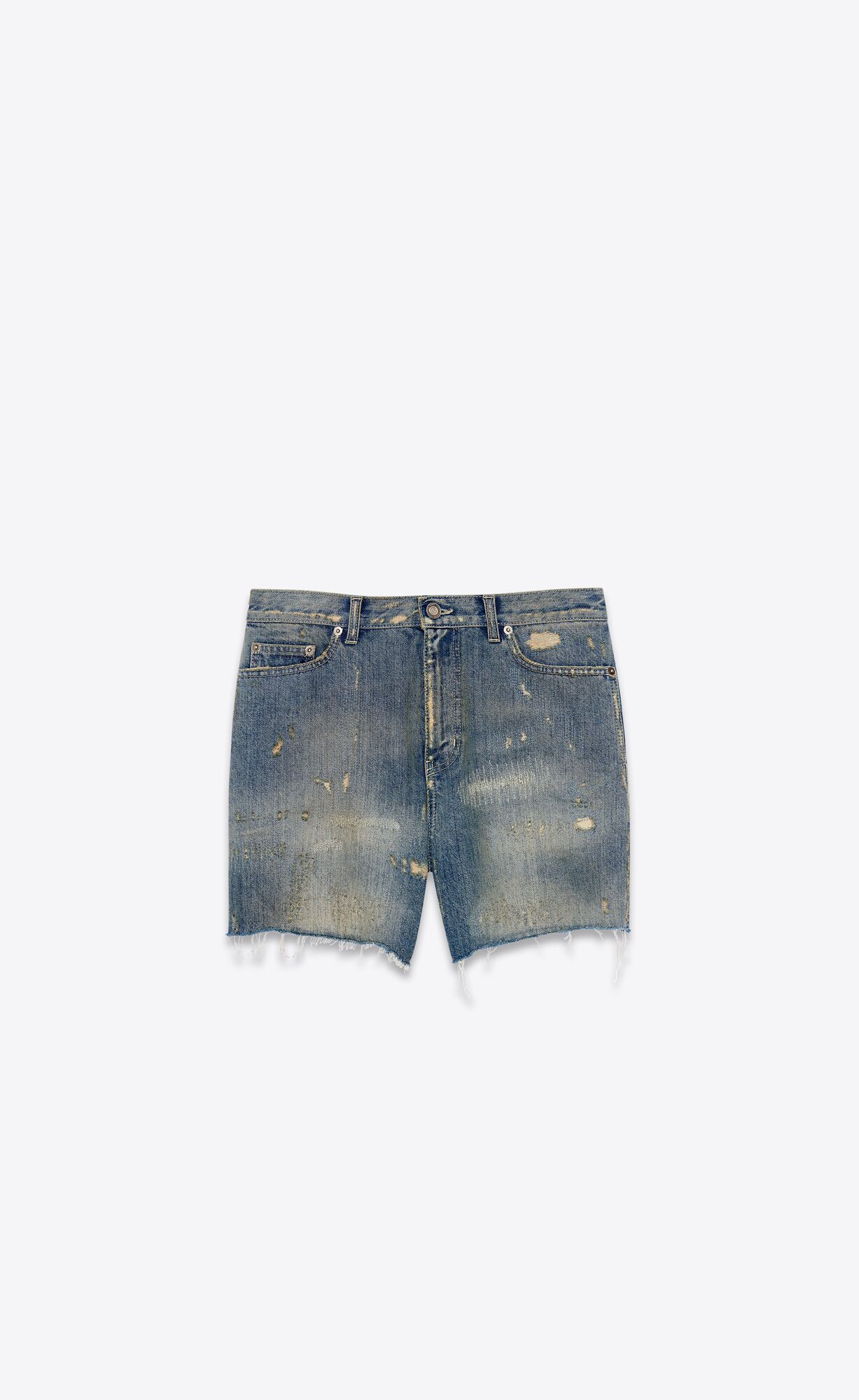 1. Saint Laurent Destroyed California Shorts in Repaired Dirty Blue Denim