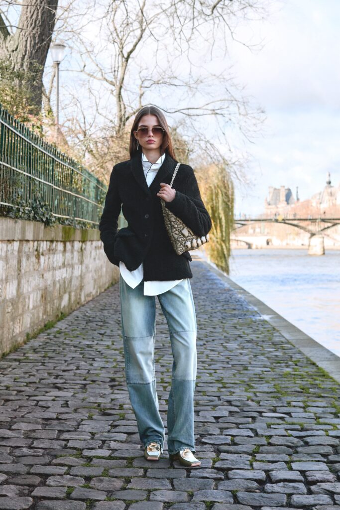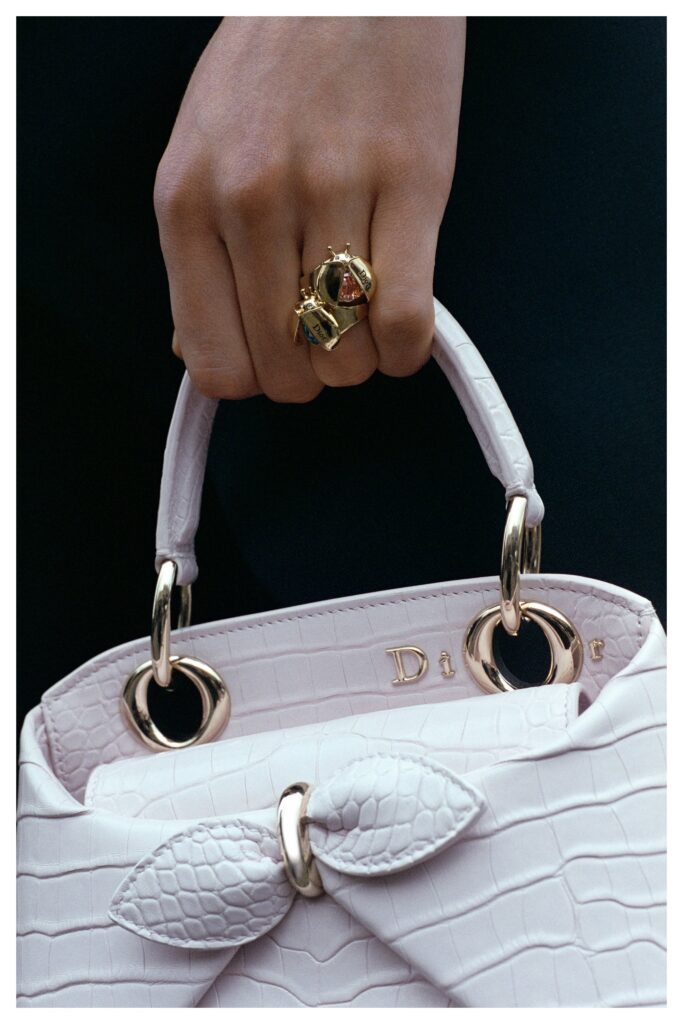 Various design elements from the house’s heritage are evident including dramatic silhouettes. The incorporation of the house’s initials are incorporated in elegant ways. In some instances, they are subtle, and other times, they make a bolder proclamation. Accessories steal focus through their intricate design and smart incorporation. As for bags, the Lady Dior and Dior Cigale are some that make appearances. Sculptural dresses and wide silk denim trousers are eye-catching, as well as a three-piece denim set with intricate floral embroidery throughout.