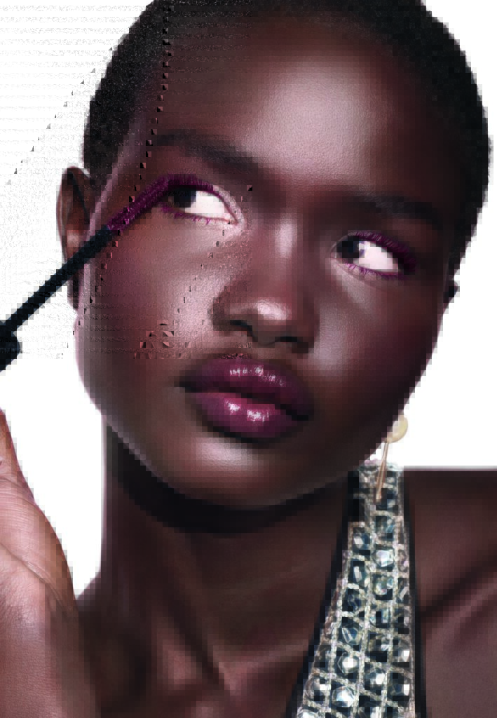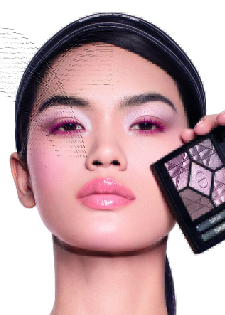 Packaged in a sleek silver and black sleeve, the mascara features a brush designed with three distinct bristle types for precision and lift. Available in black, blue, brown, pink, and plum, shades of vivid colors flash across models Akon Changkou and Qun Ye. Changkou, keyed in Overplum, pairs the look with the Brown Brocart harmony from the new 5 Couleurs palette. On Ye, an eclectic pink hue unfolds—Overpink mascara layered against the Rose Moiré palette.