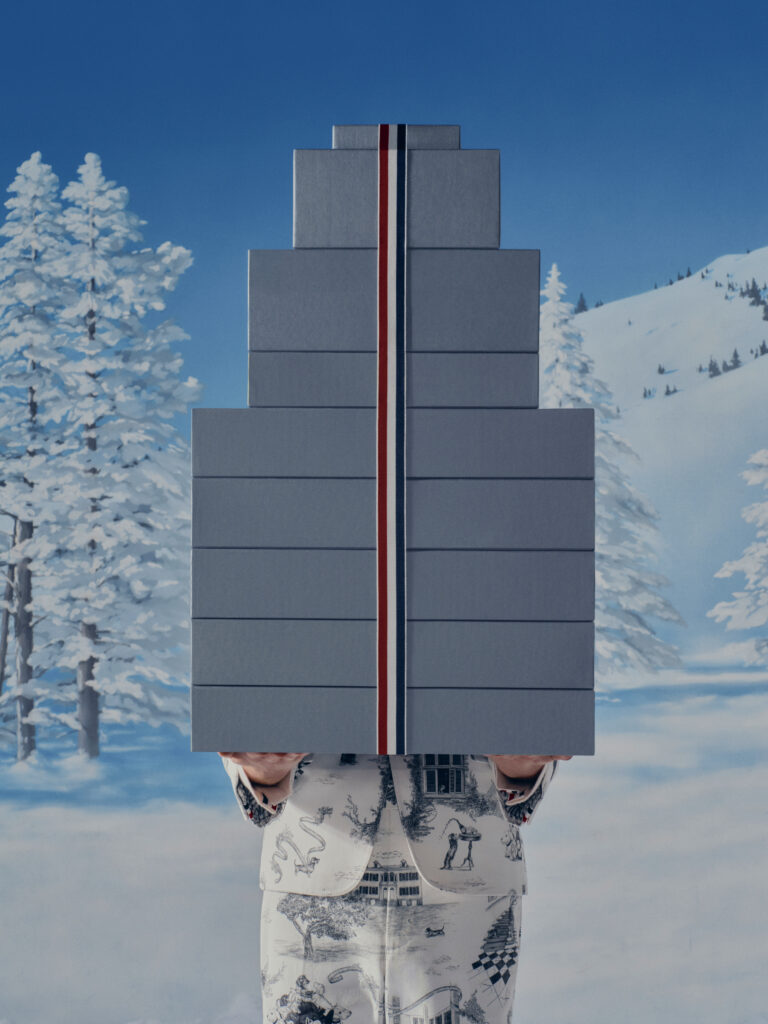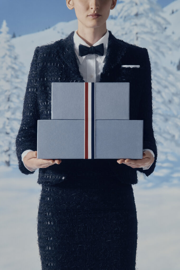 The Thom Browne 2025 Holiday collection is now available at www.thombrowne.com, Thom Browne retail stores, and select wholesale partners globally.