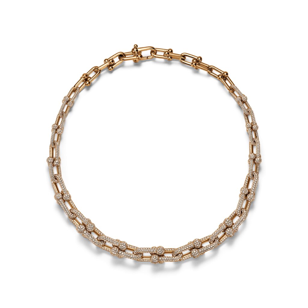 Throughout the film, Arjona wears pieces from the HardWear by Tiffany collection, including a graduated necklace, matching earrings, and a bracelet, paired with a Tiffany Setting engagement ring. The collection’s bold links and graphic silhouettes reinforce the campaign’s central message of love grounded in strength and resilience. Together, the film and jewelry offer a contemporary expression of Tiffany’s vision of enduring romance.
