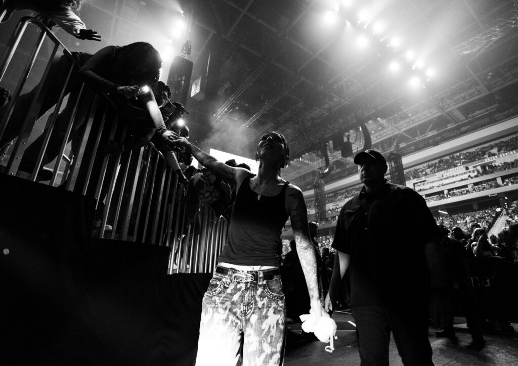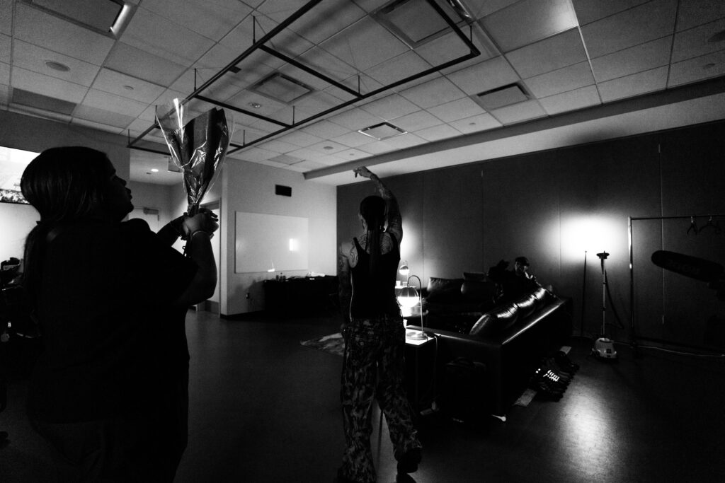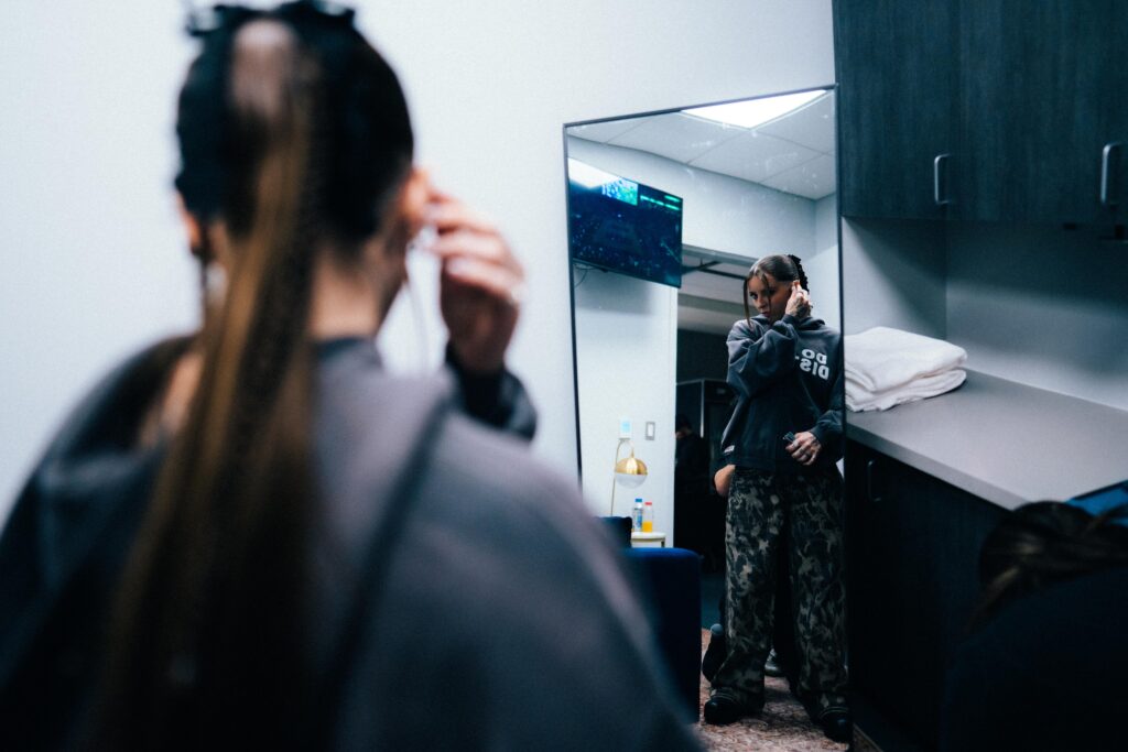 Already a GRAMMY nominee and Coachella performer, Young Miko shows no signs of slowing down. Last month, she joined Billie Eilish as a special guest on select U.S. dates of her Hit Me Hard and Soft: The Tour, culminating in a high-energy two-night finale in New York. From the stage to backstage, Miko offered V an exclusive glimpse behind the scenes, taking the stage in signature style: a custom Shapes hoodie emblazoned with the words “DO NOT DISTURB,” an Our Legacy belt, and Rock Revival jeans for Saturday’s show; and for the final night on Sunday, a Paly Hollywood tee, Racer Worldwide belt, and Vaquera pants.