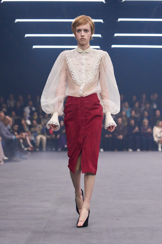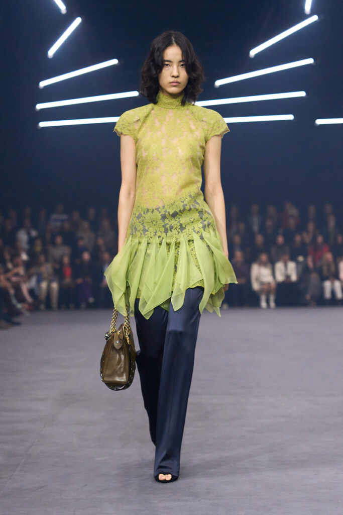 “Fireflies” was the title of the collection presented under strobe lights, adding to the theme of finding light. As models showcased Michele’s looks, a voiceover spoke as music, but it was Pamela Anderson’s voice, who also sat front row.