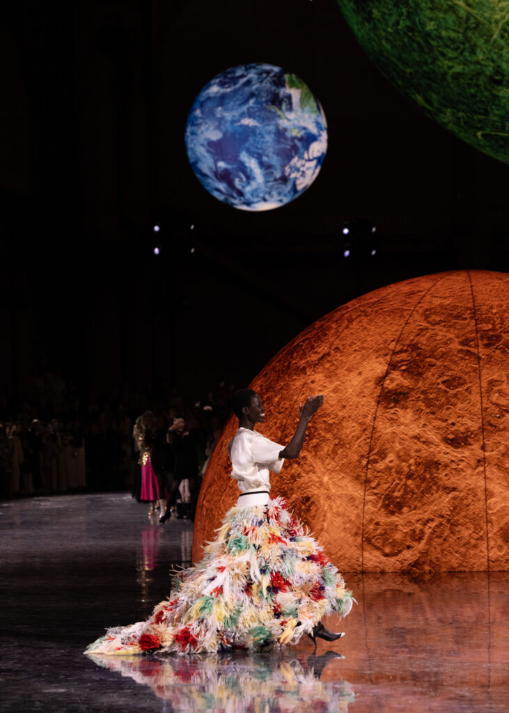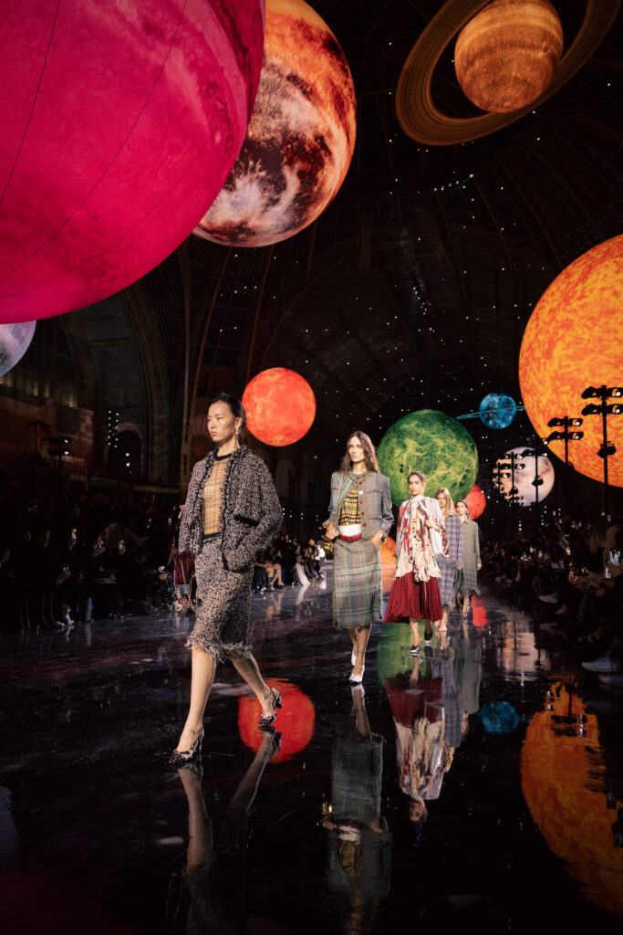 Prior to his debut, Mattieu Blazy had imagined a conversation with Gabrielle Chanel—who loved outer space. “For this first Chanel show, I wanted to do something quite universal, like a dream, something outside of time,” Blazy said in a statement shared by the maison on Instagram. “I was fascinated by the universe of stars, a theme so dear to the House. We all observe the same sky, and I think it provokes the same emotions in us.”