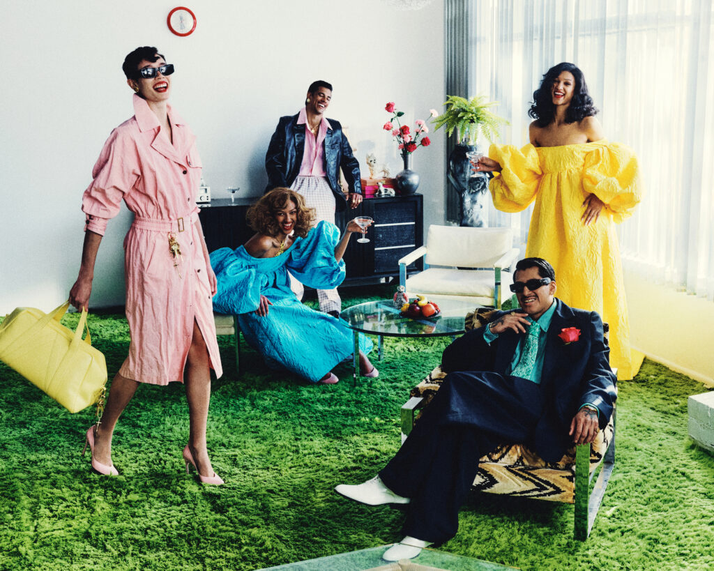Willy Chavarria: I always love shooting in houses, because when I bring a bunch of characters into a house, in some way, it makes them feel like family or close friends. I just love the way that we can story-tell when we’re inside the house. So, as with everything I design and create, there’s kind of a narrative, and each person is a character. In this particular editorial, we have the hot guy who’s maybe from out of town but is staying at the house, who walks around with his shirt off. And then we have the hot girl who wears her skirts too low. There’s the woman who owns the house who’s always busy and can’t be bothered. And we’ve got her cousin, who’s staying there. [Laughs] It’s a fun cast of characters who we’ve brought to life in these very Latino-sensibility lifestyle situations.